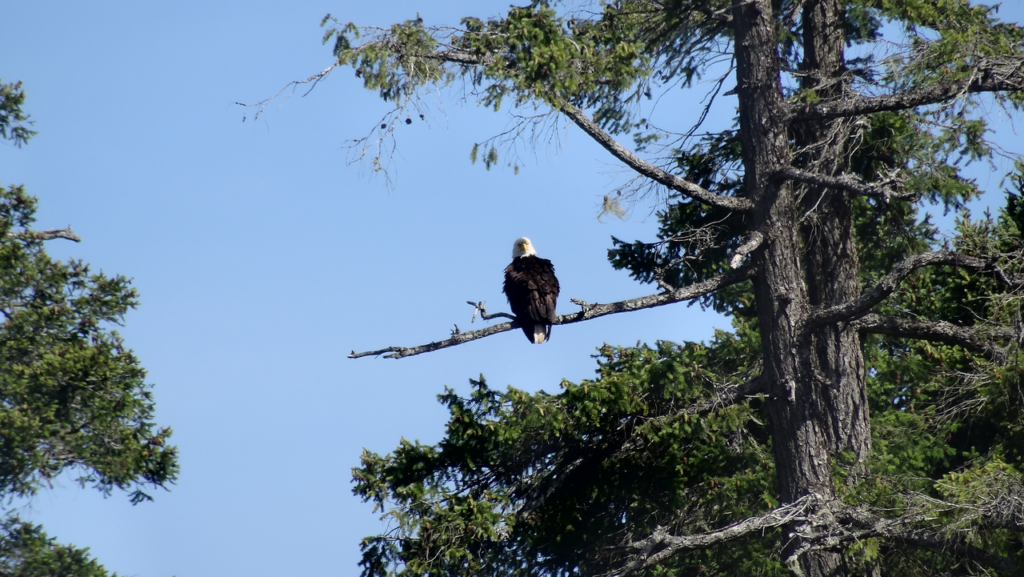 The next day we decided to seek out more solid shores in James cove, which was the next cove over. More exposed but much better beaches, hikes, and eagles peering over our meanderings.