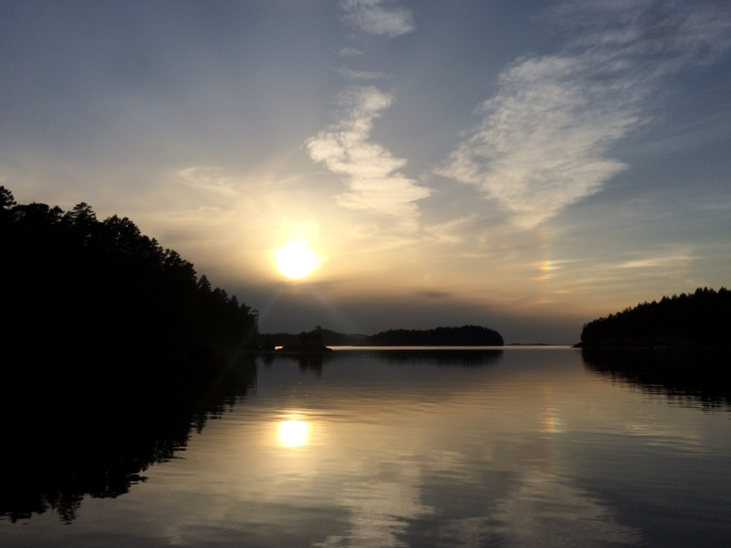 As with any trip you hope for good sailing during the day and calm nights while in Port. Heading out of calm Echo Bay destined for Bedwell Harbor (one of our only options for entering Canada) we would not be so lucky and settled in for a sunny but cool “drive” north across the boarder. Champaign and Aperol spritzers marked the moment the Global Positioning System worked it’s magic of calculations and invisible communications with multiple satellites orbiting above us to pin-point a made up boundary of cultures and laws.